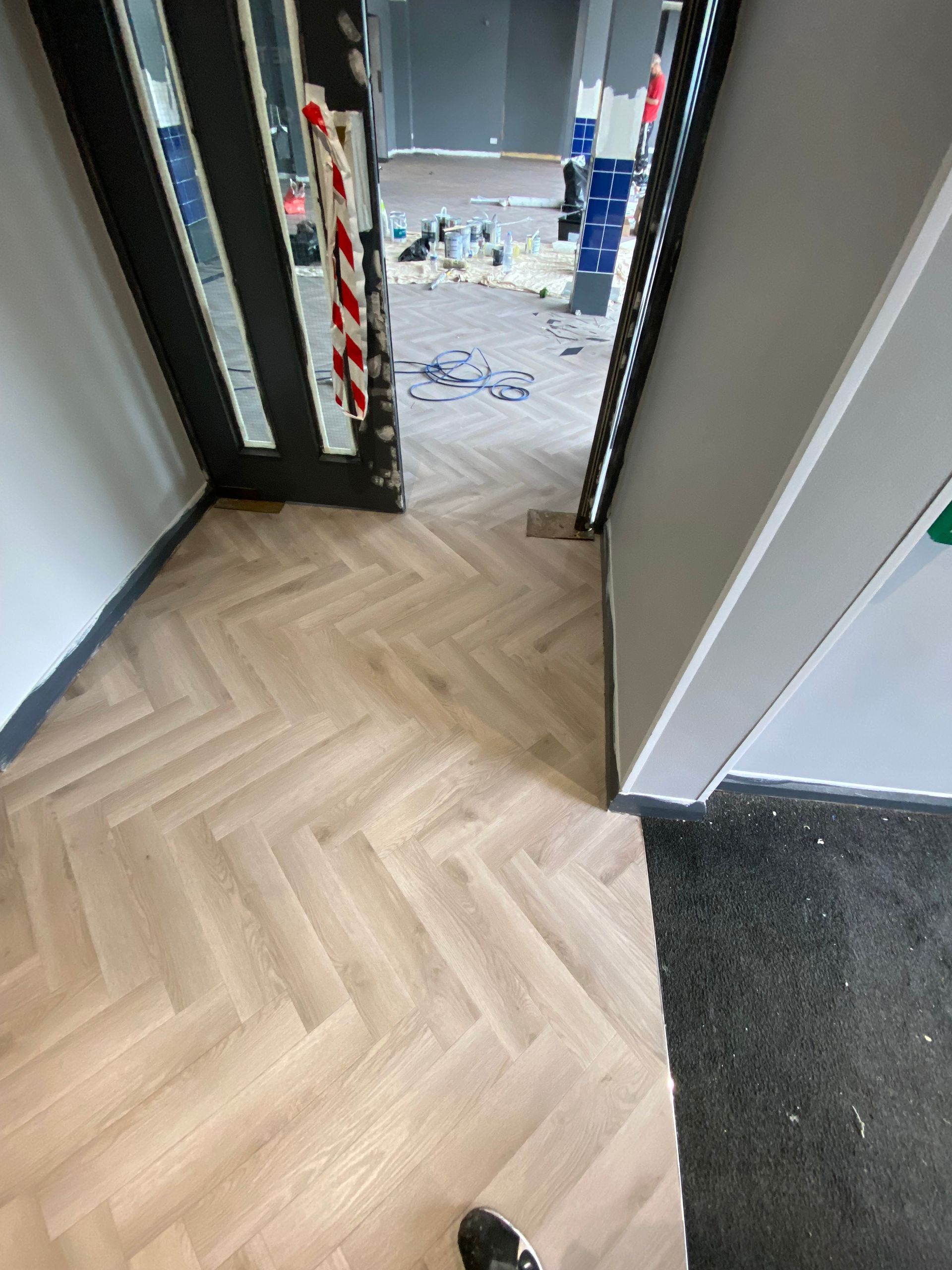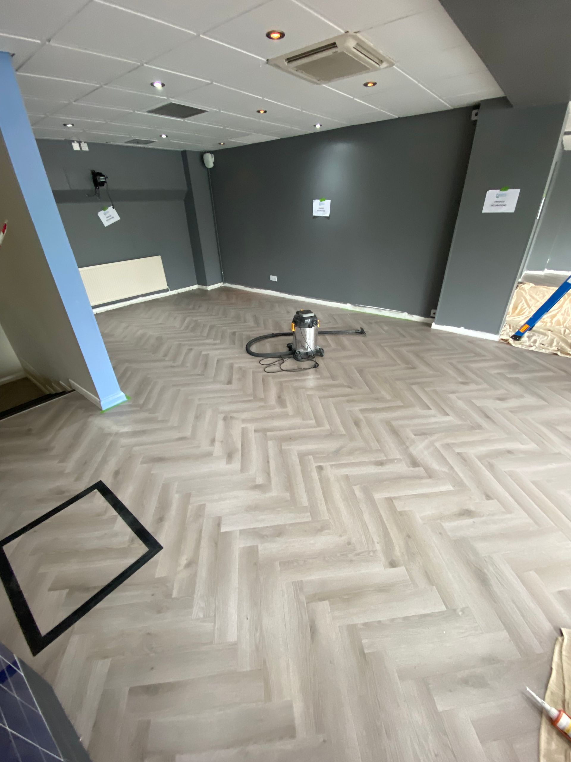 LVT JOB COMPLETED AT IPSWICH FC PORTMAN ROAD. 200m2 OF LVT LAID IN BEAUTIFUL HERRINGBONE TO BAR / ENTERTAINMENT AREA