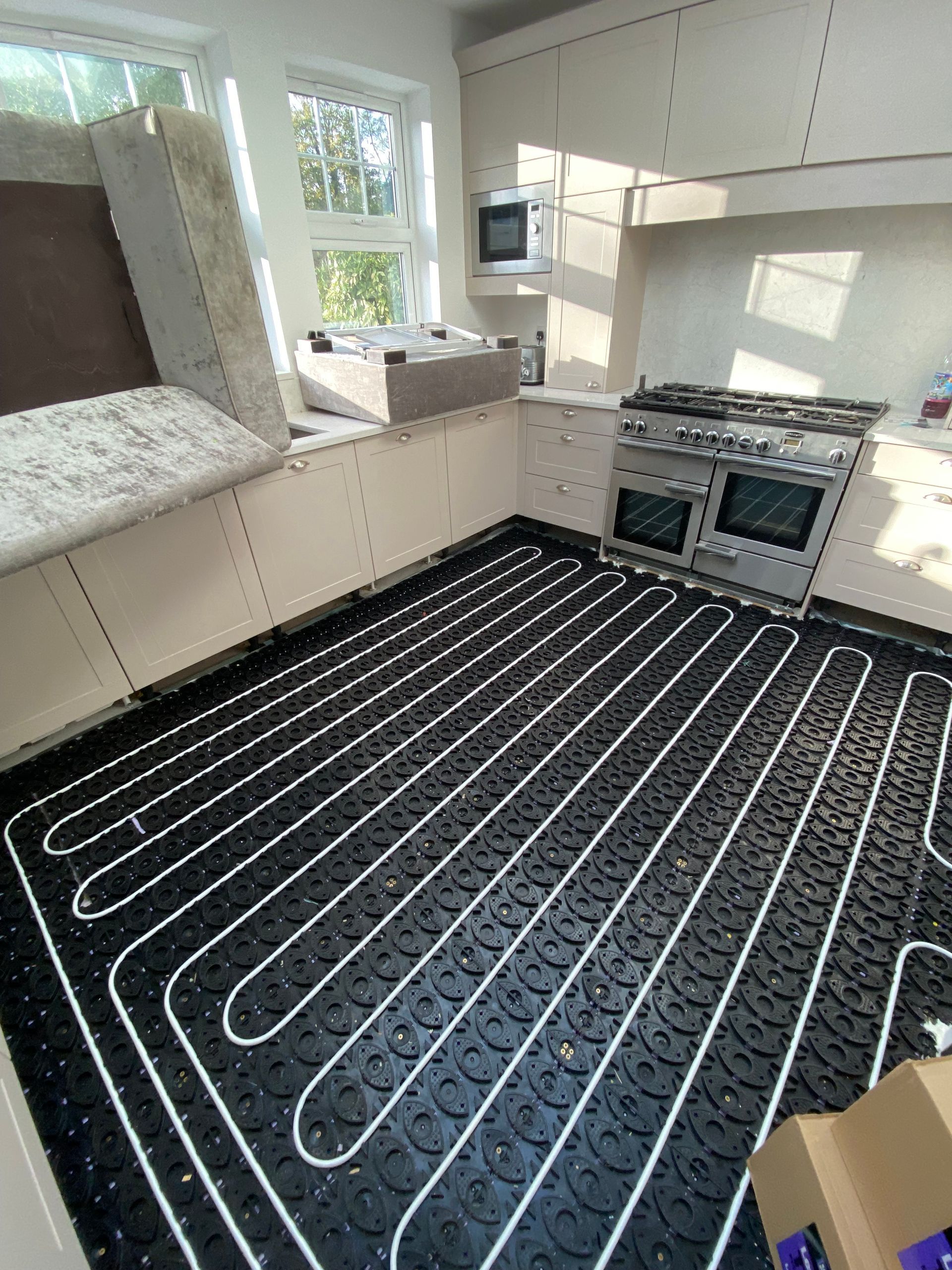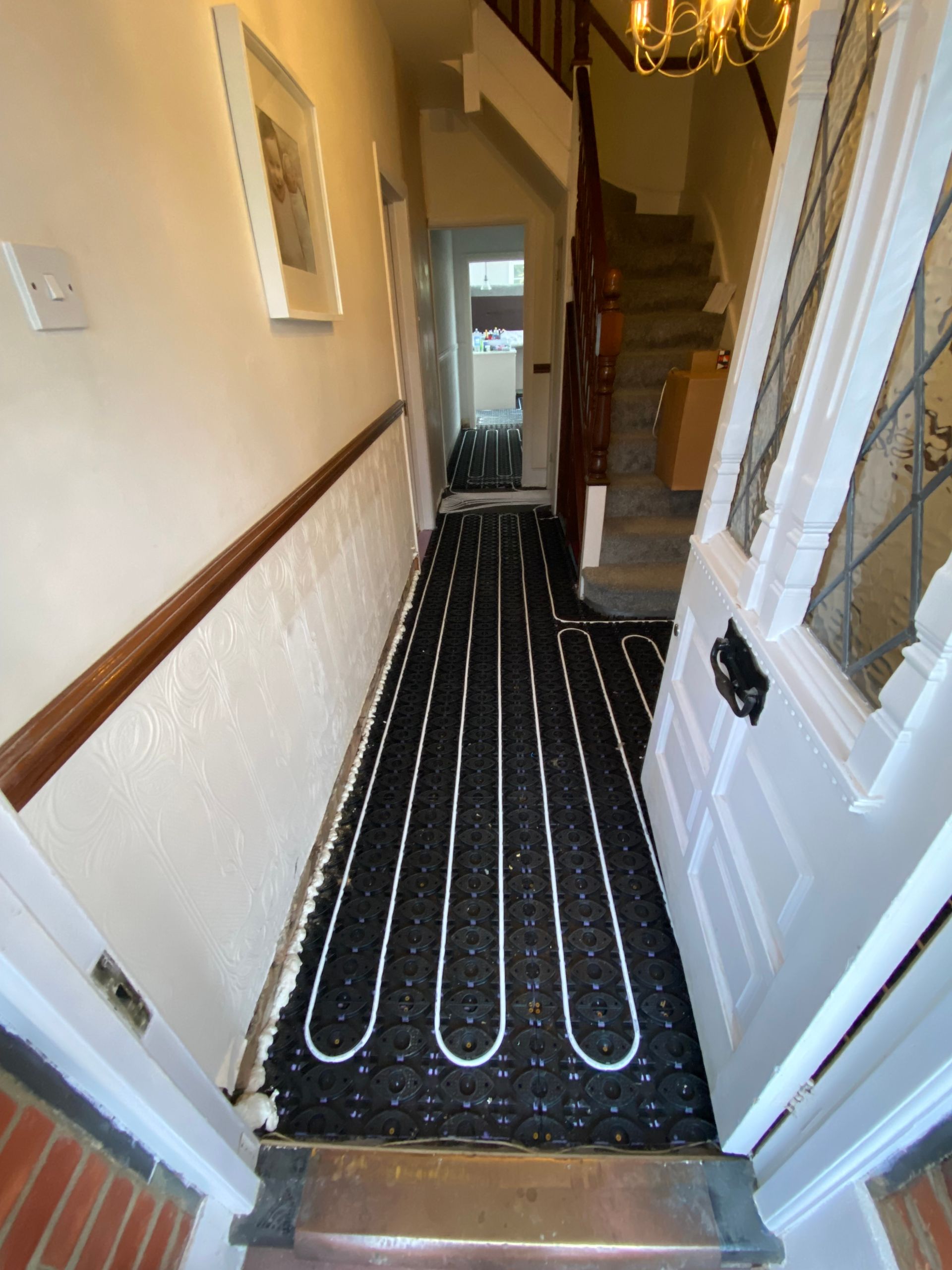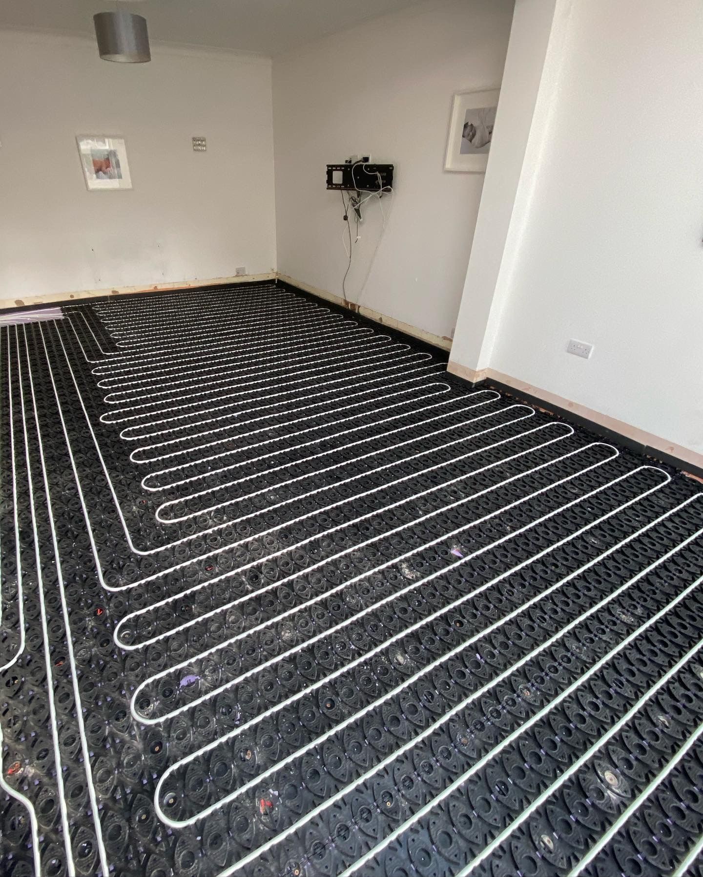SCREEDING PREP COMPLETED IN UPMINSTER, 77m2 OF A FULL 8mm LATEX SCREED OVER NEW UNDERFLOOR HEATING TO HALLWAY, UTILITY, BATHROOM, KITCHEN AND LIVING/DINNING AREA. ALL READY FOR A BEAUTIFUL HERRINGBONE LVT WITH BORDER AND ACCENT STRIP.
